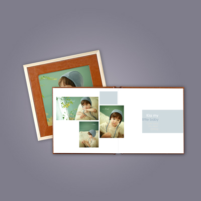 实木相框,高档PU封面,200克高档铜版纸压纹,环保夹层